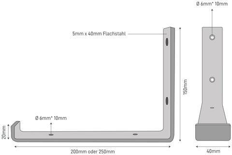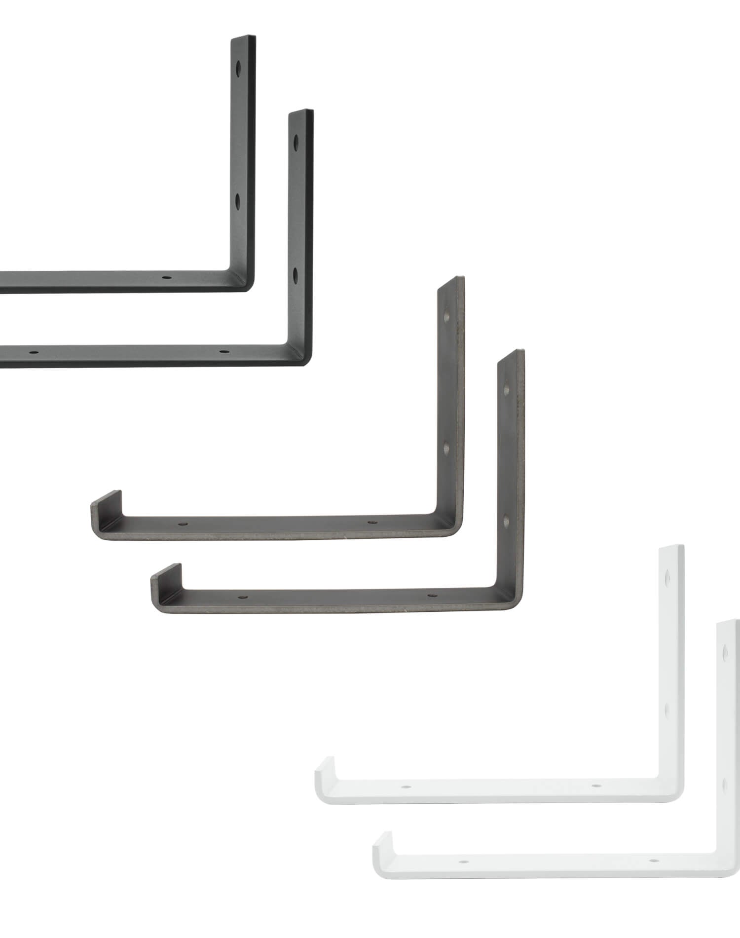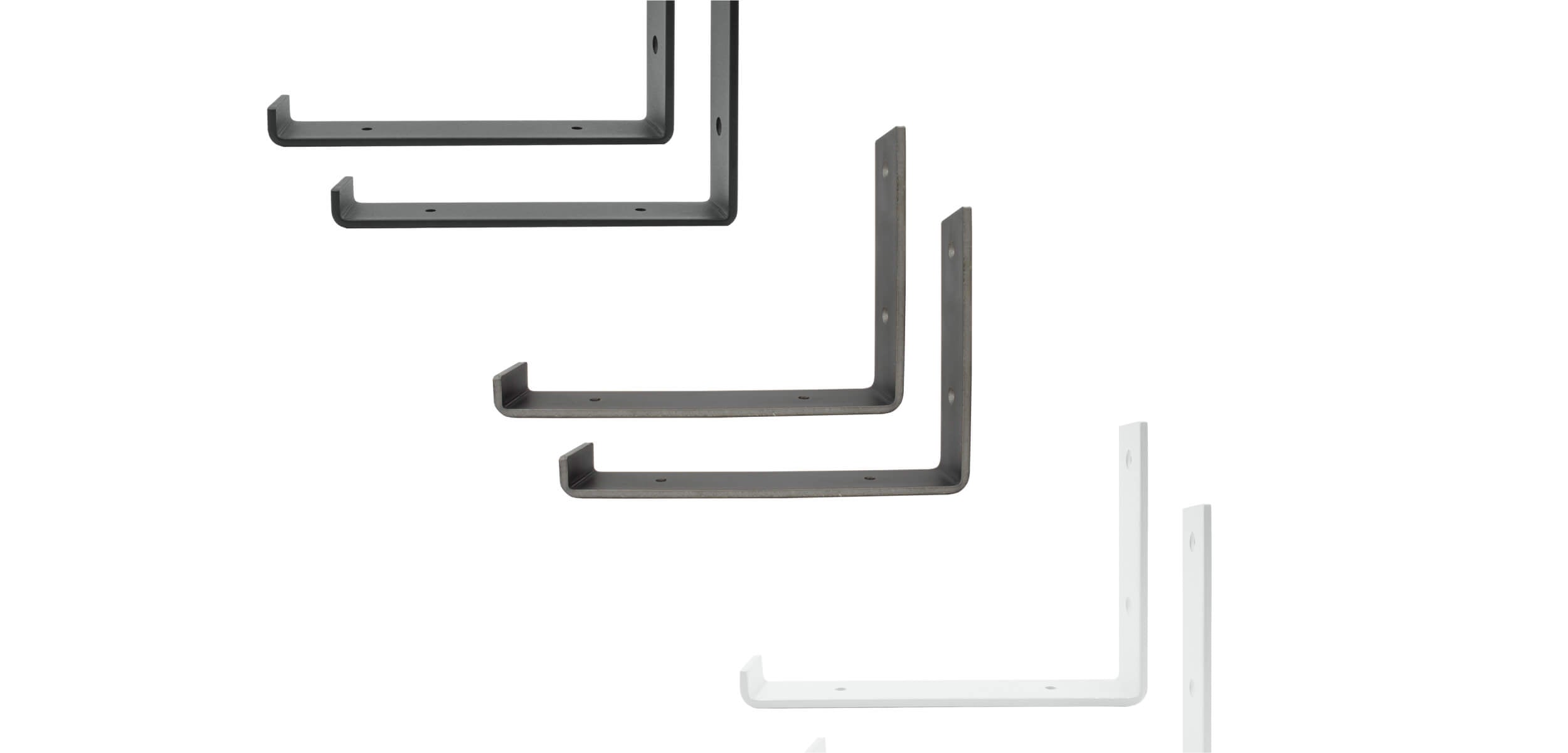 Onze plankbeugels zijneenvoudig te monteren. Het zijdelings open ontwerp zorgt voor eenvariabele lengte van de plankAlleen de diepte is beperkt tot maximaal 200 mm of 250 mm.